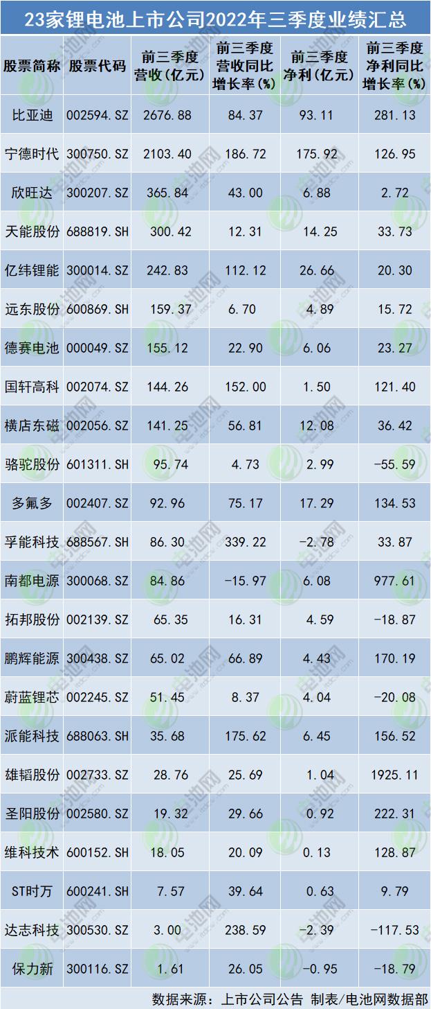 淨利方(fāng)面,23家上市(shì)公司中20家(jia)淨利潤爲(wèi)正值,淨利(lì)總額💔383.81億元(yuán),平均淨利(lì)潤16.69億元,其(qi)中比亞迪(dí)、甯德時代(dài)、億緯锂能(neng)、多氟多、天(tiān)能股份、橫(heng)店東磁淨(jing)利超10億元(yuan),甯德時代(dai)淨利達175.92億(yi)元;18家淨利(lì)同比正增(zeng)長,其中,比(bi)亞🌐迪、雄韬(tao)股份、南都(dou)電源、聖陽(yang)股份、鵬輝(hui)能💘源、派能(néng)科💰技、多氟(fu)多、維科技(jì)術、甯德時(shí)代、國軒高(gāo)㊙️科10家實現(xiàn)淨利同比(bi)翻倍增長(zhang),雄韬股份(fèn)淨☀️利同比(bǐ)增長超19倍(bei)。